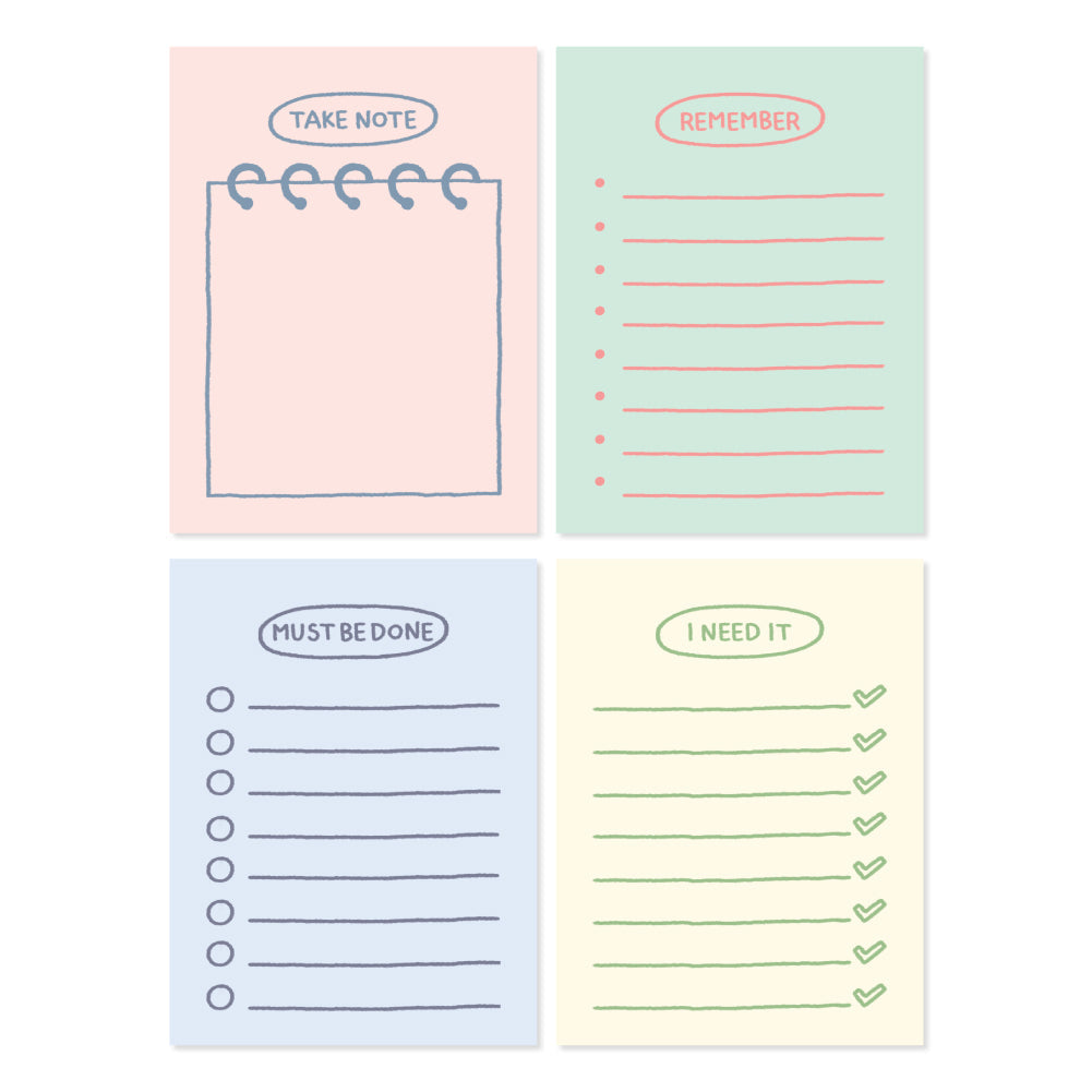 Monolike Memopad Sketch Planning Ver.2 design SET - 4 Packs, 4 Different Designs, 100 Sheets Per Pad, Total 400 Sheets, Note pads, Writing pads