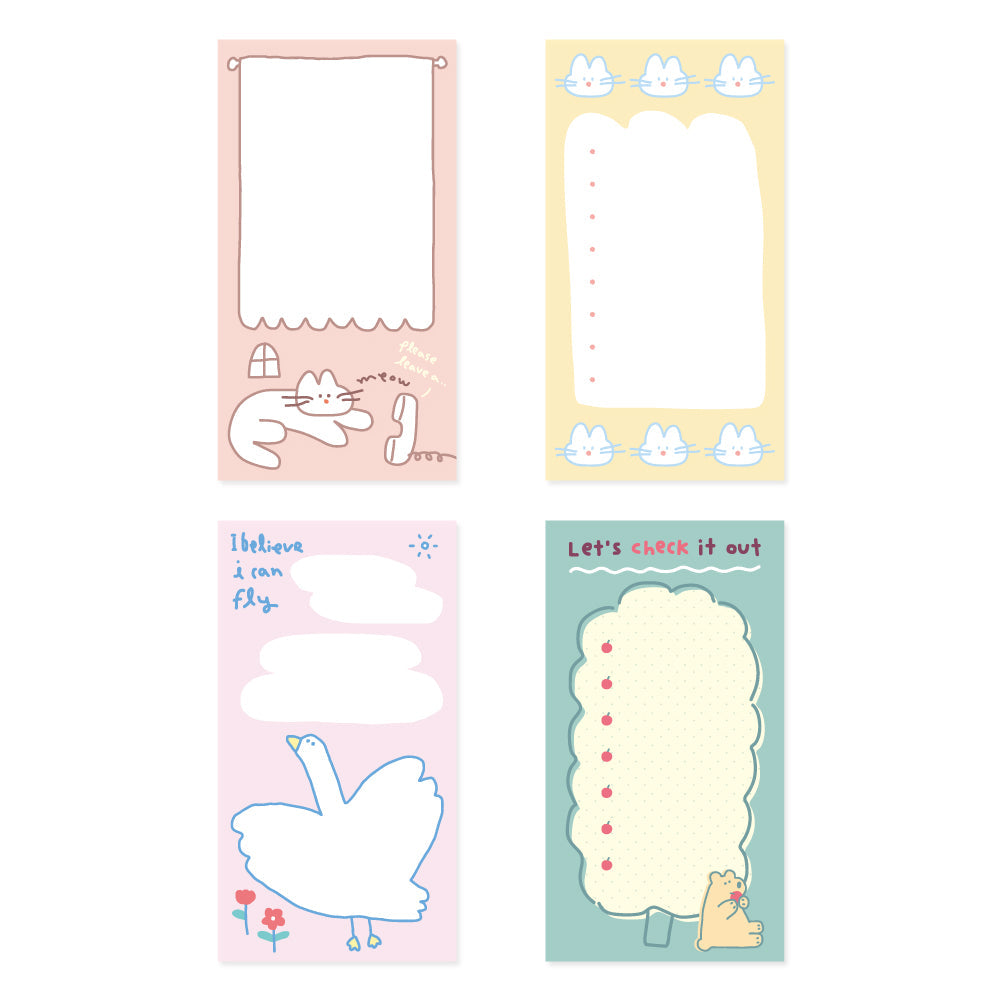 Monolike Memopad Storytown Afternoon A SET - 4 Packs, 4 Different Designs, 80 Sheets Per Pad, Total 320 Sheets, Note pads, Writing pads, 80x148mm