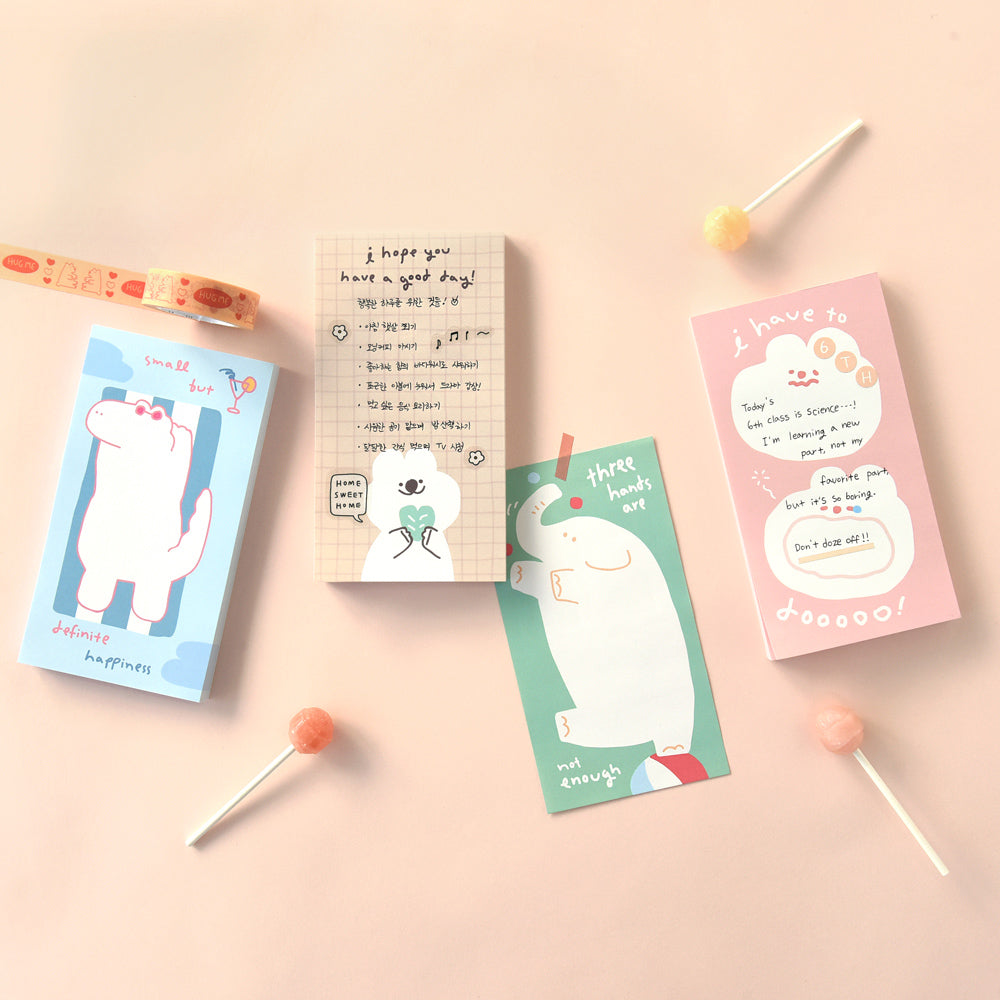 Monolike Memopad Storytown Afternoon B SET - 4 Packs, 4 Different Designs, 80 Sheets Per Pad, Total 320 Sheets, Note pads, Writing pads, 80x148mm